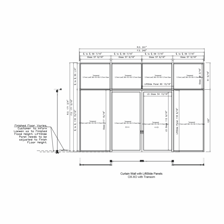 Corner Curtain Wall w/ XO LiftSlide & Transom - Elevation
