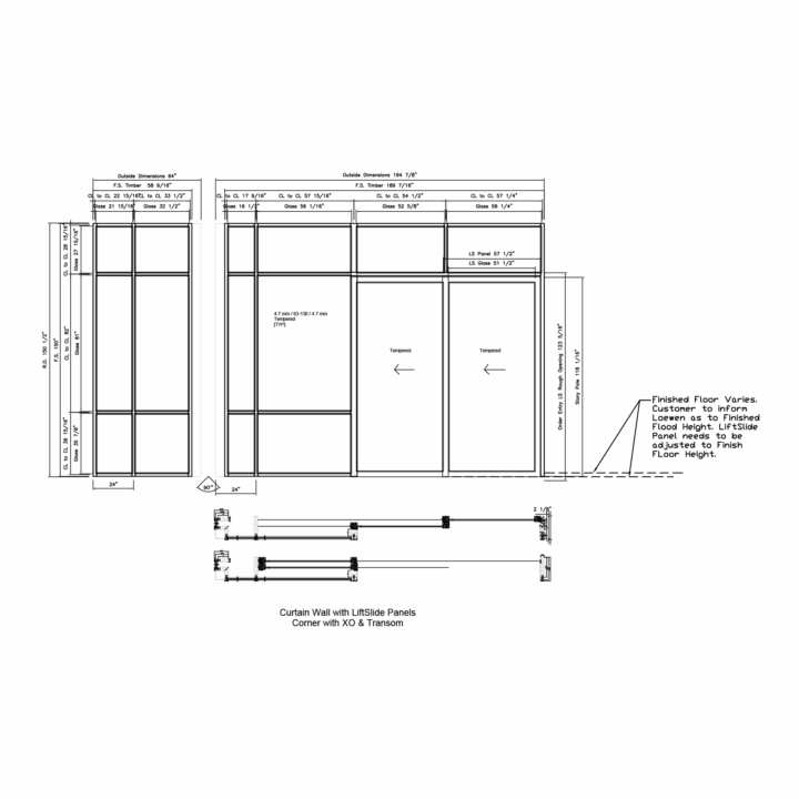 Corner Curtain Wall w/ XO LiftSlide & Transom - Details